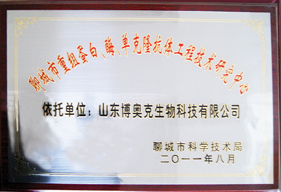 公司研究中心認(rèn)定為“聊城市重組蛋白、酶、單克隆抗體工程技術(shù)研究中心”