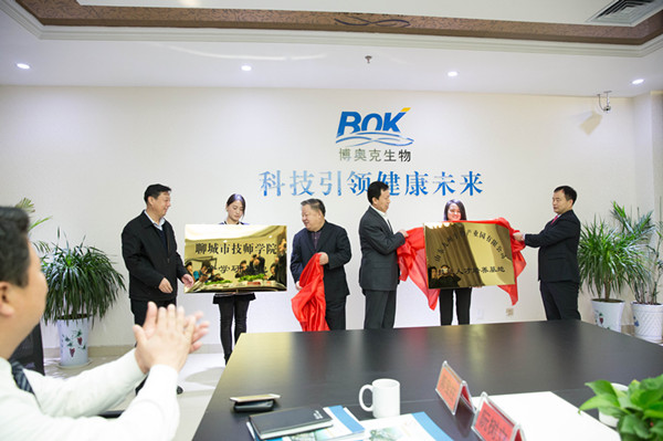 為加強山東九州生物產(chǎn)業(yè)園有限公司和聊城市技師學(xué)院的校企合作,充分發(fā)揮人才經(jīng)濟優(yōu)勢,共建創(chuàng)新體系,促進校企間合作與交流,實現(xiàn)資源有效利用和共享,努力推動創(chuàng)新,實現(xiàn)雙方經(jīng)濟和社會發(fā)展互補互利,雙方就建立人才培養(yǎng)就業(yè)基地,師資共享和項目合作機制實現(xiàn)校企融合,建立“大眾創(chuàng)業(yè),萬眾創(chuàng)新”實驗基地,學(xué)院加掛“山東九州生物產(chǎn)業(yè)園有限公司技能人才培養(yǎng)基地”,產(chǎn)業(yè)園加掛“聊城市技師學(xué)院產(chǎn)學(xué)研基地”達成協(xié)議,雙方負責(zé)人簽約并為基地揭牌。