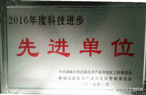 日前,聊城高新區(qū)黨工委、管委會(huì)召開2016年度總結(jié)大會(huì)暨表彰大會(huì),山東博奧克生物科技有限公司被評(píng)為“2016年度科技進(jìn)步先進(jìn)單位”!