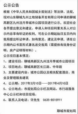 3月10日,聊城市規(guī)劃局對高新區(qū)九州洼月季城市公園項目批前公示。
