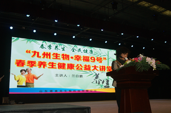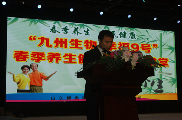 2015年4月9日九州生物產(chǎn)業(yè)園九州洼會展中心迎來了1000余名參加春季養(yǎng)生大講堂的社會各界朋友,董事長劉欽松為此次活動(dòng)致歡迎詞,聊城市民政局竇淑芬局長致開幕詞。